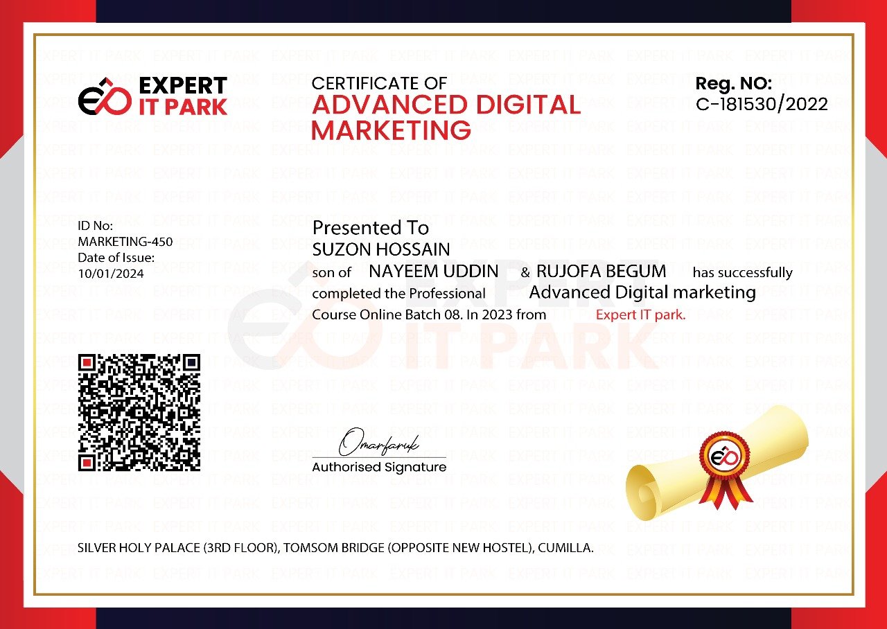 👋 I’m Suzon Hossain a Digital Marketer with 3+ years of experience.